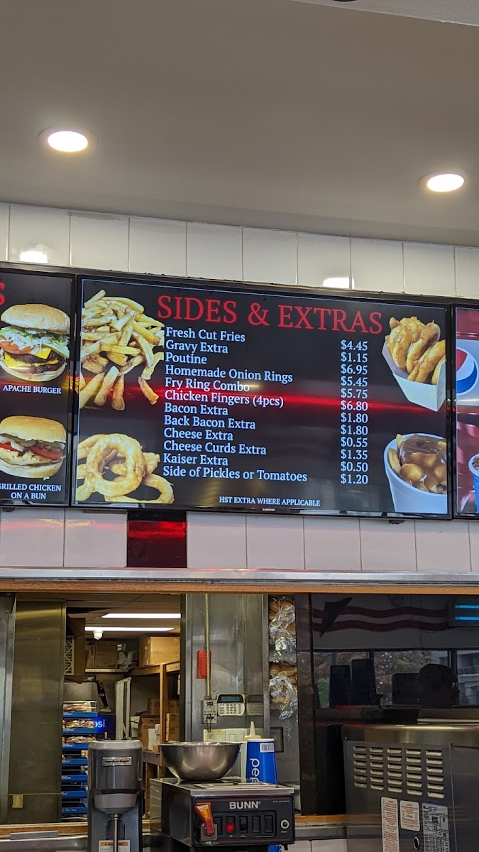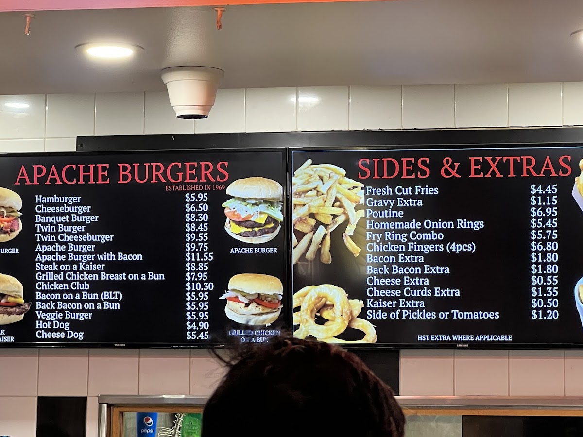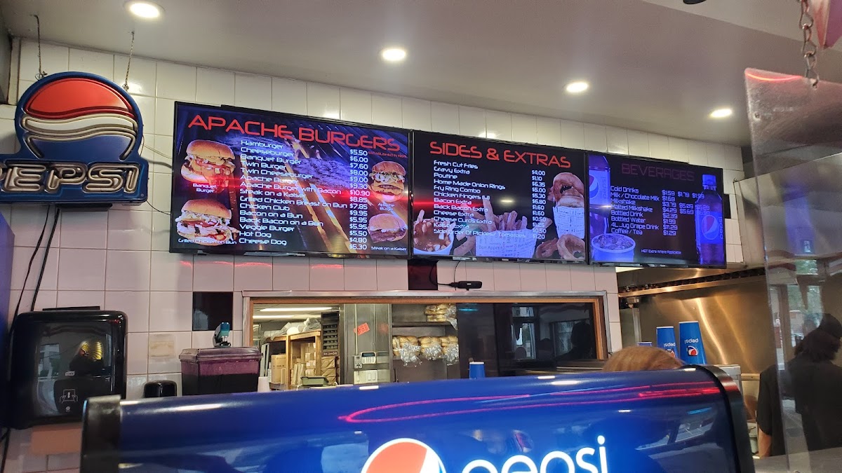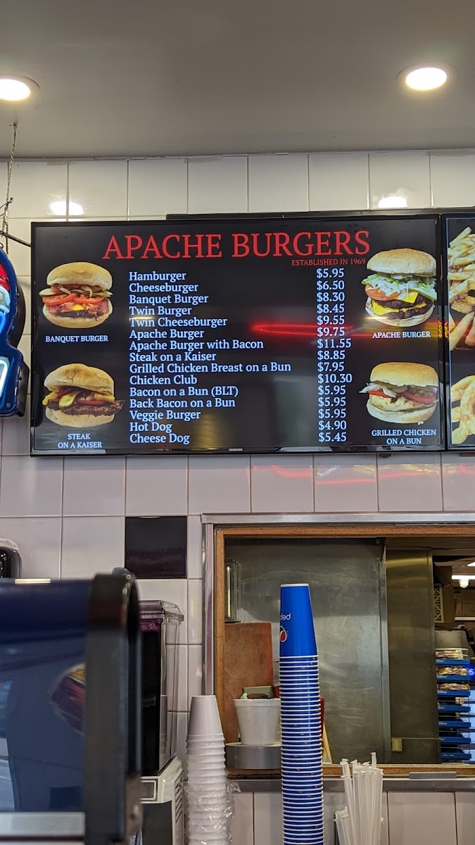 “ Love Apache!!! We ordered two cheese burgers and fries and both were 10/10!!! Fries were definitely made fresh to order and the veggies on the burger were super fresh and crisp! Would definitely visit again when i’m back in the west end! ”